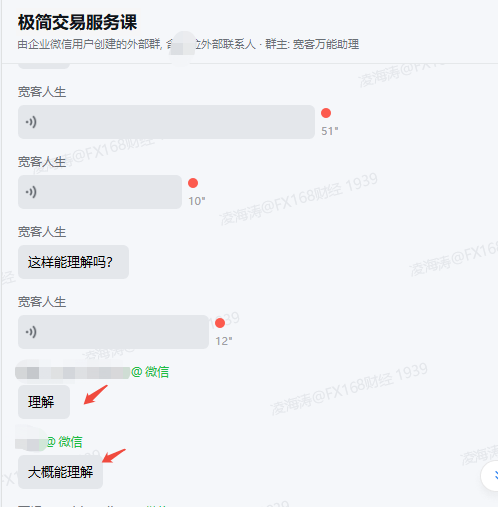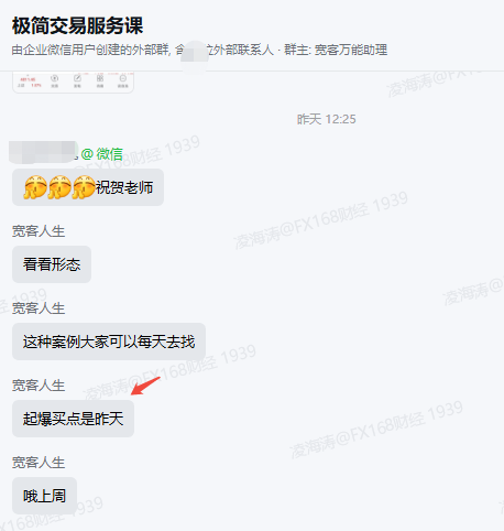 而对于已经具备一定基础的老学员,宽客老师则精准把握他们的提升需求,直接以实盘教学推动理论升华。不同于纸上谈兵的讲解,宽客老师带着学员直面真实市场,在涨跌波动中演示如何运用极简方法判断入场时机、把控仓位风险,将抽象的理论转化为可直接复用的交易动作。每一次实盘拆解,都是对交易纪律的强化;每一次实时答疑,都是对操作细节的优化,让老学员们在实战中不断打磨交易体系,突破能力瓶颈。“有老师把关,做交易的时候心态稳定多了”,这是服务群里同学们的共同心声。交易从来不是单纯的技术比拼,更考验心态的把控。在宽客老师的陪伴式教学中,无论是新学员还是老学员,都不再是独自奋战的“孤勇者”。遇到行情异动时,有老师的专业分析指引方向;产生操作困惑时,有及时的答疑解惑驱散迷雾。这种稳稳的安全感,让大家得以摆脱情绪干扰,严格遵循交易规则,从容应对市场变化。