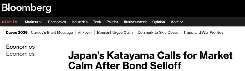 FX168财经报社(亚太讯 日本国债正遭遇史诗级抛售,长期国债收益率飙升至创纪录高位。美国彭博社周二(1月20日)发布独家报道称,日本财务大臣片山皋月(Satsuki Katayama)在经历债券剧烈抛售的一天后呼吁市场参与者保持冷静。