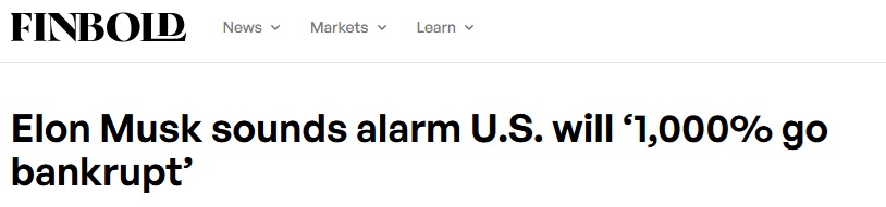 FX168财经报社(亚太)讯 在2月5日的一次采访中,亿万富翁埃隆·马斯克(Elon Musk)再次强调了他对技术的信心以及对债务问题的鹰派立场,并警告称,由于巨大的国家负担,美国将“1,000%”破产。