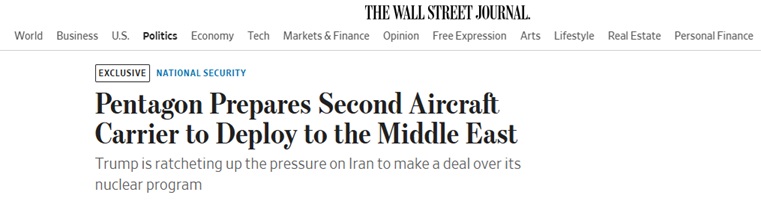 近几周来,美国已经加强在中东地区的军事力量,从南海派遣了“亚伯拉罕·林肯”号航空母舰,并增派了其他军舰、防空系统和战斗机中队。