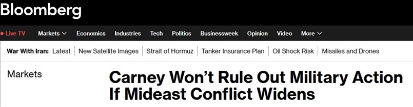 #伊朗危机追踪#FX168财经报社(亚太)讯 美国彭博社周四(3月5日)最新报道称,加拿大总理卡尼(Mark Carney)表示,如果伊朗战争引发军事行动,“任何人都无法绝对地排除”参与的可能;如有必要,加拿大将与盟友站在一起。