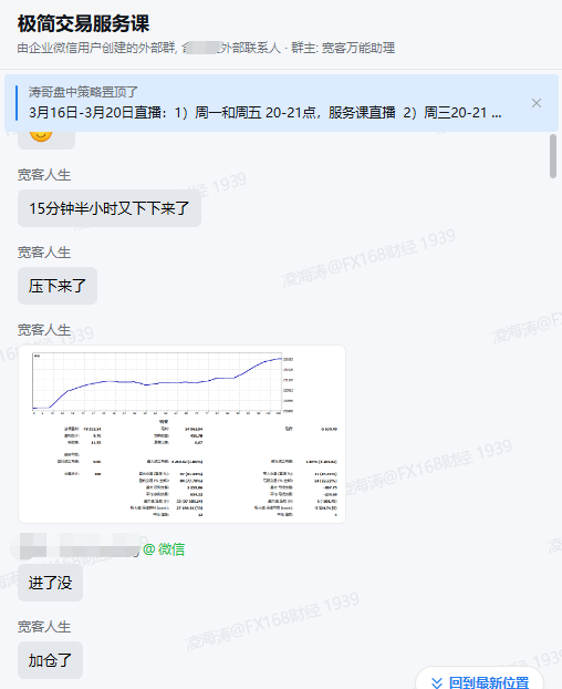 当日,宽客老师精准把握市场节奏,在群内及时给出贵金属布局机会,从入场点位、节奏把控到风险提示,清晰明确、简单易懂。学员们从容跟随、有序操作,随着行情如期启动,顺利实现盈利,稳稳落袋。更让人安心的是,宽客老师还在群内展示了近期策略收益曲线。直观的图表清晰呈现:账户走势平稳向上,回撤可控、收益持续,完美体现出极简交易体系的稳定性与可靠性。