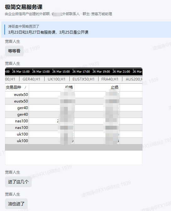进入欧盘时段,正是行情酝酿的关键节点。《极简交易方法论》服务群内,宽客老师准时发布当日交易策略,从方向判断、入场区间到风控要点,清晰布局、一目了然,为大家指明了当日的操作思路。