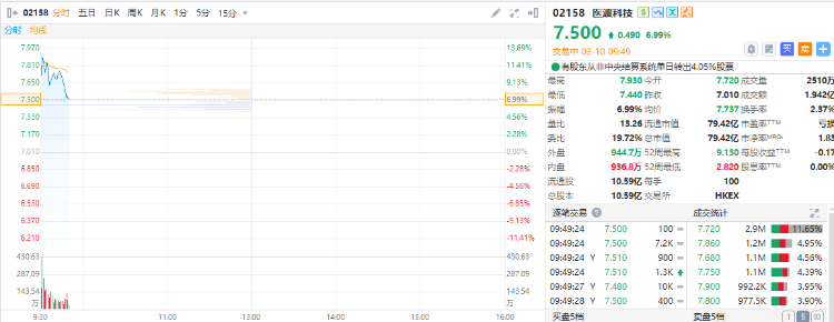 华盛资讯3月10日消息,港股盘初,医渡科技 $02158.HK 一度涨超12%,年初至今已累涨逾60%,现报7.5港元,成交额1.94亿港元。
