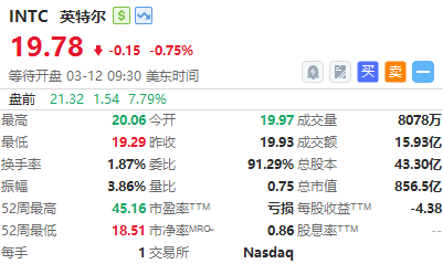 英特尔 $INTC 盘前大涨超7%,报21.32美元;有消息称台积电向英伟达、AMD、博通提出合作意向,共同投资英特尔的晶圆代工厂。