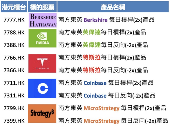 南方东英Coinbase两倍做多ETF $07711.HK | 南方东英Coinbase两倍做空ETF $07311.HK |