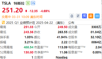 随着市场对美国关税影响的担忧加剧,特斯拉 $TSLA 盘初跌超4%,机构下调其交付预期和目标价。