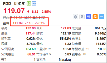 华盛资讯4月3日讯,中概股盘后暴跌!拼多多暴跌6%,阿里巴巴、京东、百度均跌超5%,网易、哔哩哔哩跌超3%。