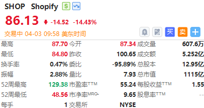 Shopify跌超14%,美国“关税大棒”挥向全球,美银证券警告:电商软件股成“重灾区”。