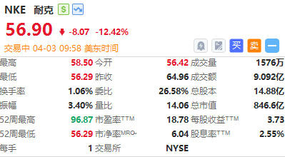 耐克重挫12%,触及2017年11月以来低点,越南面临美方46%高额关税,服装鞋帽对美出口将受冲击。