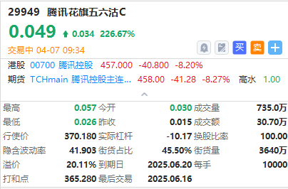 因腾讯控股日内大跌9%,这个认沽证大幅上涨226%。买入此认沽证来看跌腾讯,则可以在正股下跌时,获得相应的收益。