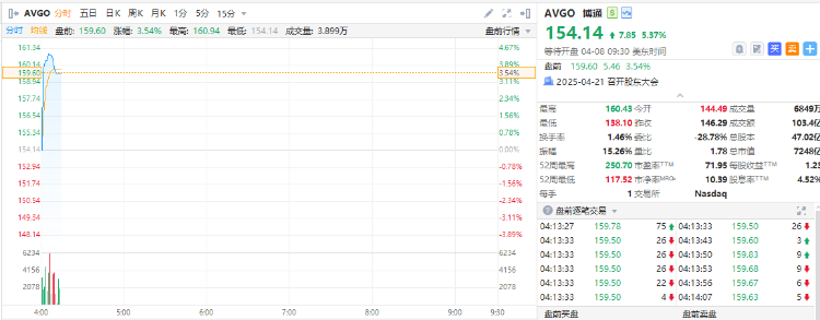 博通盘前涨超3%,公司宣布100亿美元股票回购计划。
