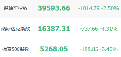 周四美国股市整体回落,截至收盘,道琼斯指数跌2.5%,标普500指数跌3.46%,纳斯达克综合指数跌4.31%。“七巨头”全线回落,苹果跌4.24%;微软跌2.34%,英伟达跌5.91%,亚马逊跌5.17%,谷歌C跌3.53%,Meta $META 跌6.74%,特斯拉跌7.27%。