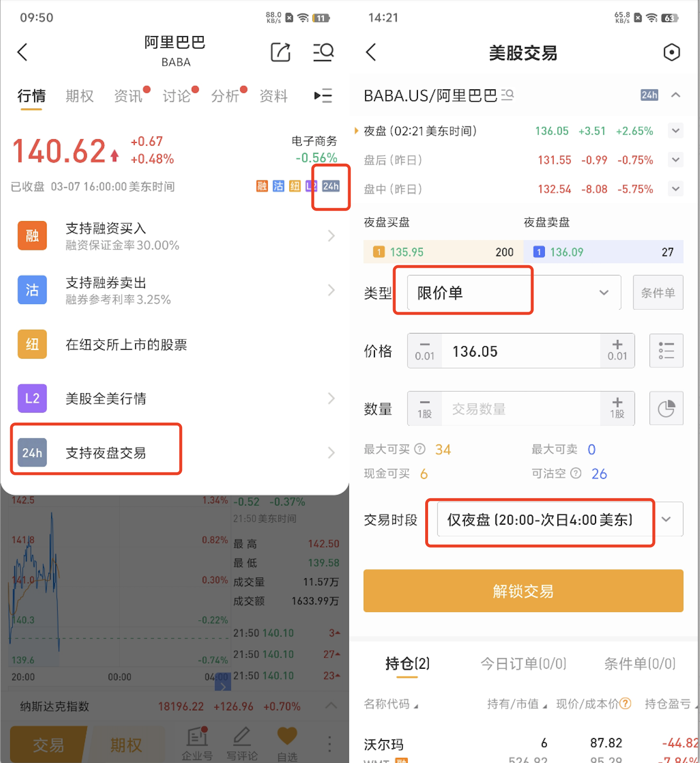 注意:目前,仅支持在夜盘时间内提交夜盘订单(仅支持限价单类型),且订单仅可在夜盘时段内成交。未成交的订单将在美东时间04:00后自动过期。