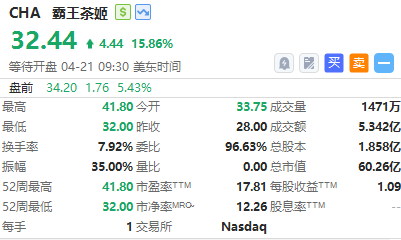 霸王茶姬股价盘前上涨超5%,该股在美股的IPO首日收盘涨幅接近16%。