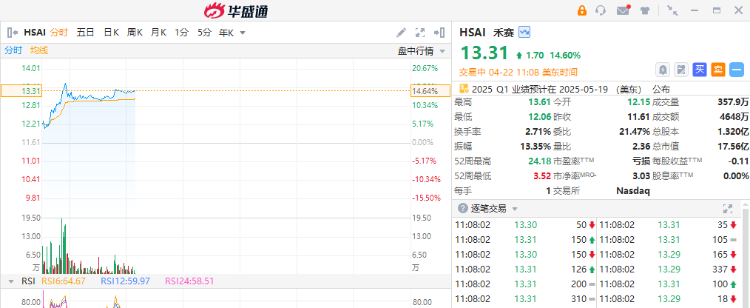 全球激光雷达企业禾赛涨超14%,消息面上,禾赛科技发布了面向L2到L4的激光雷达感知方案“千厘眼”,并发布新一代车规级激光雷达产品ETX车规级超远距激光雷达、AT1440车规级超高清激光雷达和FTX车规级纯固态补盲激光雷达。其中,AT1440线数达1440线,点频超过3400万点每秒,该产品将于2025年下半年开始量产,在卡尔动力全球首款未来运输机器人上首发。