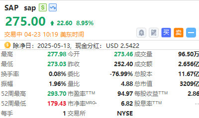 思爱普 $SAP 涨9%,Q1营收同比增长11%至90.1亿欧元,调整后每股收益同比大增79%。