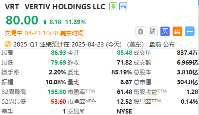 Vertiv Holdings $VRT 大涨超11%,公司Q1营收、调整后EPS均超市场预期,并上调每股收益指引。