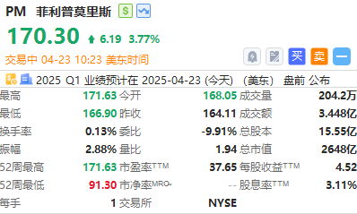 国际烟草巨头菲利普莫里斯 $PM 涨超3%,第一季度业绩数据超出市场一致预期。该公司指出,持续的烟草产品销量增长支撑了强劲的营收表现和利润率扩张趋势。