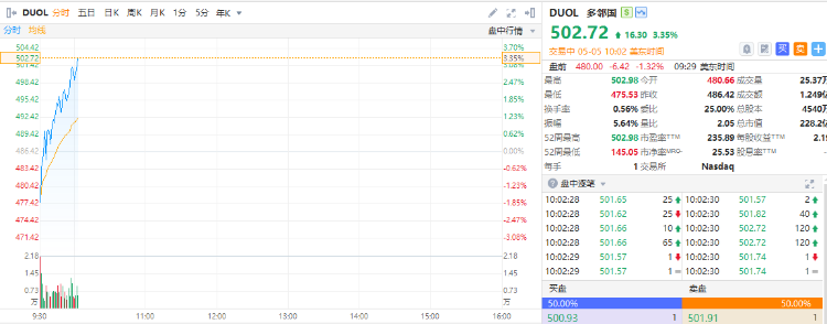 多邻国 $DUOL 逆市涨逾3%创新高,股价超500美元,上周五暴涨超21%。多邻国以创新的教学模式吸引全球用户,利用AI热潮持续扩展在线教育市场。