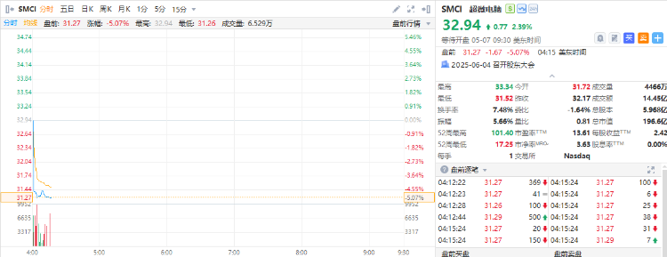 超微电脑盘前跌超5%,AI服务器需求“亮红灯”,Q3业绩及Q4指引令人失望。
