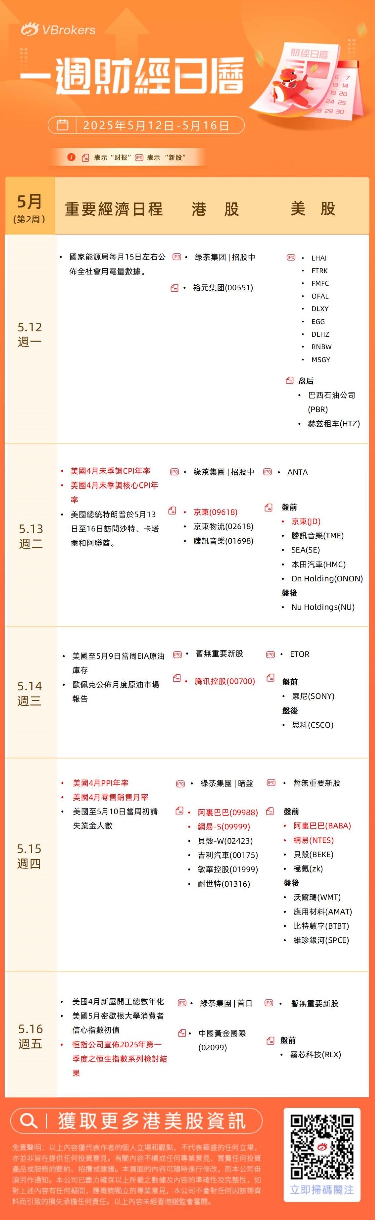 中概股财报将进入披露高峰期。下周腾讯控股,阿里巴巴,京东,网易等港股科技巨头将陆续公布财报,投资者将密切关注关税事件对其供应链和未来营收前景的影响。