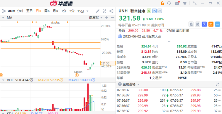 联合健康盘前跳水7%,该股此前近三个交易日反弹逾17%,汇丰分析师表示,尽管最近进行了领导层调整,联合健康集团的盈利增长仍面临风险,因此下调了对这家医疗保险公司的评级。
