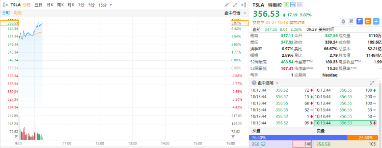 特斯拉盘初涨幅扩大至5%,马斯克称已重回7x24小时工作状态。