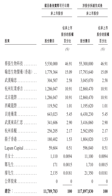 控股股东:蔡张生物科技、翰思生物医药(香港)、武汉翰思、杭州红业睿吉、北京龙磐、西藏龙磐、贝达药业等。