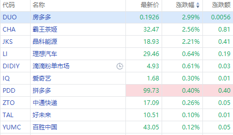 其中,房多多、霸王茶姬涨超2%,理想汽车、拼多多、滴滴跟涨。