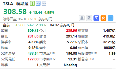 特斯拉盘前涨超2%,股价重返315美元,隔夜收涨逾4%。特斯拉“超级多头”摩根士丹利发布强势看涨研报,该行表示,尽管 “特马闹剧”短期内将给特斯拉股价带来较为不利的因素,但马斯克手里的牌非常多。