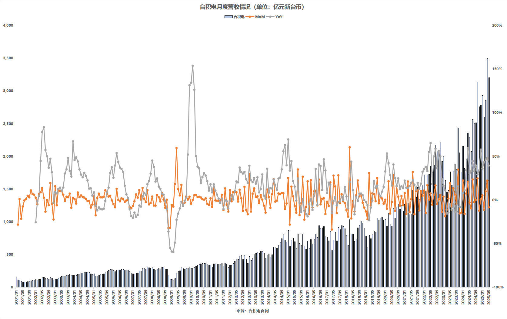 台积电 $TSM 5月营收飙升39.6%,因人工智能需求强劲