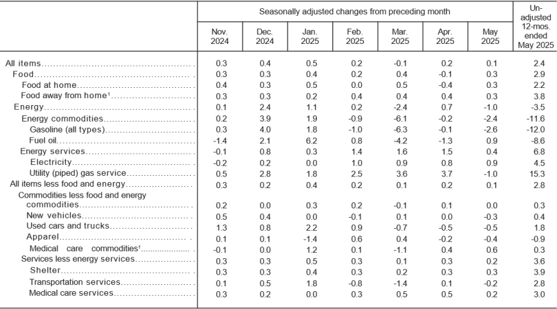 金吾财讯 | 6月11日,美东时间早上8点30分,美国劳工统计局公布了5月消费者物价指数。其中,美国5月未季调CPI同比2.4%,前值2.3%,预期2.5%;环比增长0.1%,前值0.2%,预期0.2%。