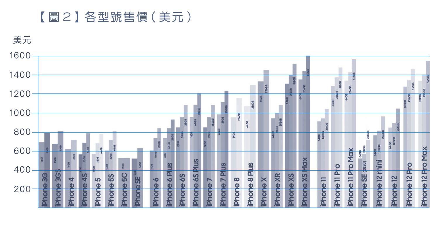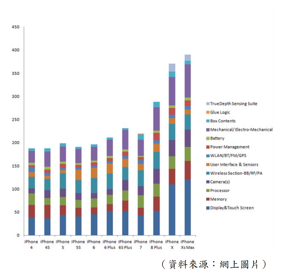 苹果产品有条件加价源于产品质素提高。但同时,亦令生产成本增加,例如屏幕面积增加,镜头数目增加,质素增加等。从上图可见,苹果推出新手机的策略,行中高端,成本增加,售价同时增加。