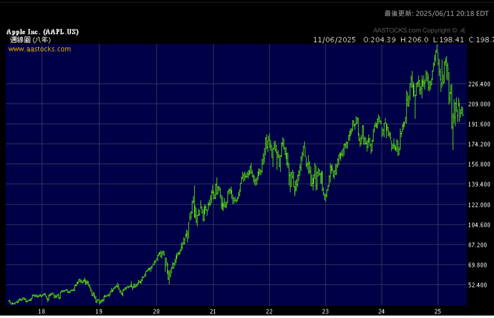 苹果公司是一间质素很高的企业,品牌、技术、销售网络等,都反映企业长远有竞争力,加上进一步扩大生态圈,以及发展新业务,企业前景正面。