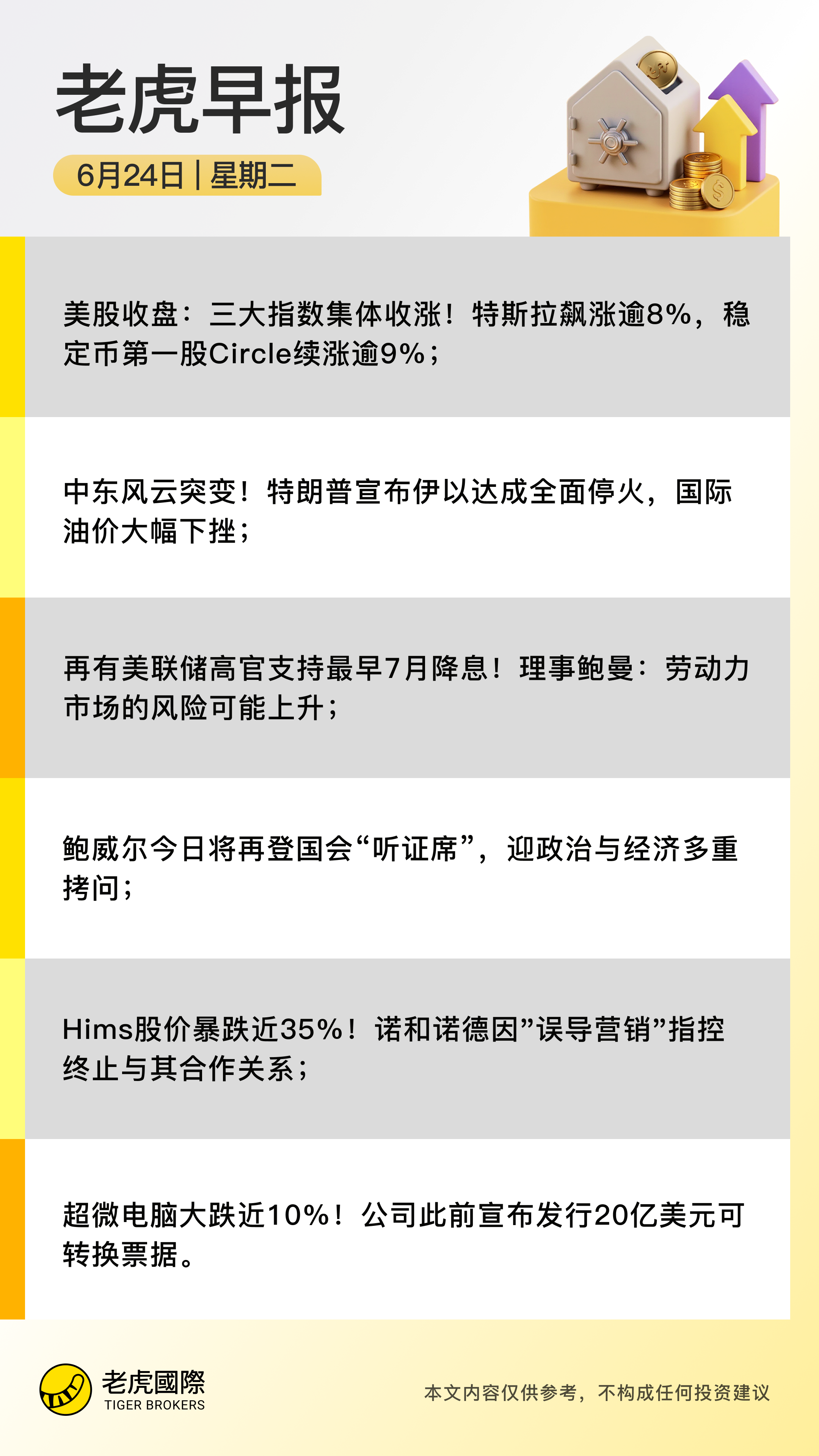 美股收盘:三大指数集体收涨!特斯拉飙涨逾8%,稳定币第一股Circle续涨逾9%;