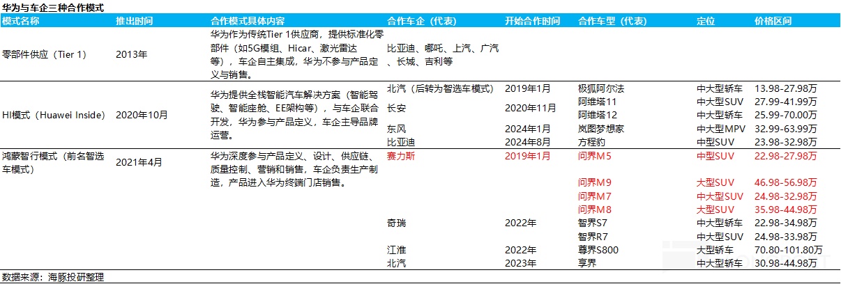 ①华为直接负责新产品定义:华为全面主导智驾,底盘优化,产品换新及价格策略;