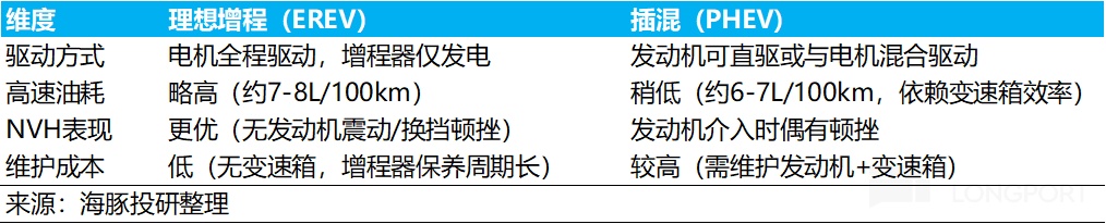当然,理想也是该赛道上首家采用了当时业内都不看好的增程技术,但实际上增程相比插混来说更能接近纯电车的驾驶体验(增程式以电驱动,无插混的“油电切换顿挫”问题)。