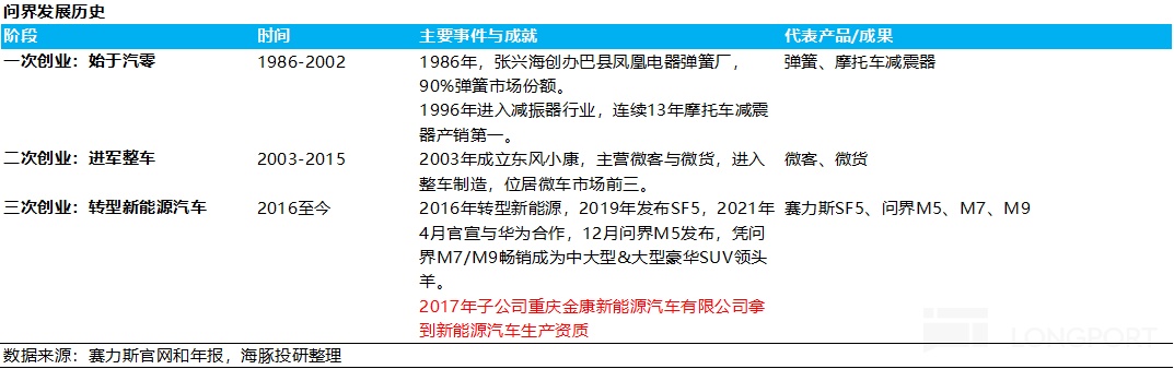 ① 制造基础:赛力斯2017年取得新能源造车资质,且两次创业积累中,具备传统上游零部件研发能力及整车制造经验;