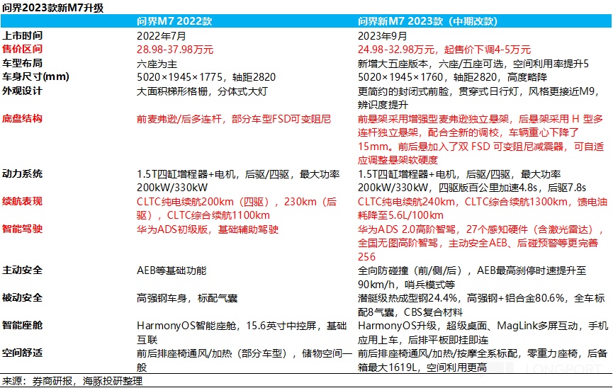 ③ M7定价:相比2022款,售价降低4-5万元,此次改款上市即大爆,上市首月累计大订突破6万台。