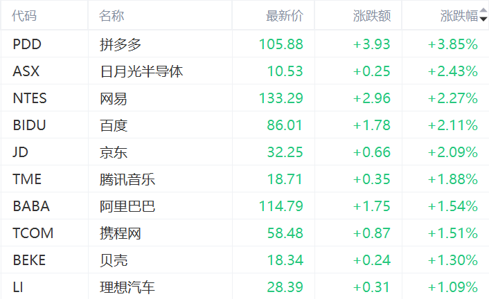 美股异动 | 中概股持续走高,YINN涨近6%,拼多多涨近4%,京东涨超2%