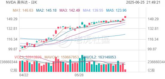 本周三(6月25日)美股盘初, 英伟达 涨超2%逼近历史高位,截至发稿报151.7美元: