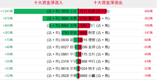 淡仓(认沽证及熊证)方面,近5日合计,小米集团、美团、泡泡玛特、宁德时代等相关淡仓分别约1041万、575万、465万及263万港元资金净流入部署;比亚迪、腾讯控股、招商银行等相关淡仓则分别约456万、352万、188万港元资金净流出。