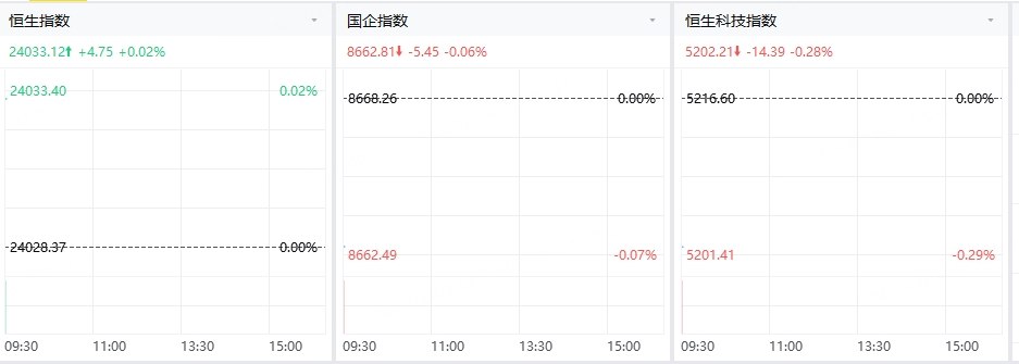 7月11日(周五),科指、国企指数低开,香港恒生指数开盘上涨4.75点,涨幅0.02%,报24033.12点;香港恒生科技指数开盘下跌14.39点,跌幅0.28%,报5202.21点;国企指数开盘下跌5.45点,跌幅0.06%,报8662.81点。