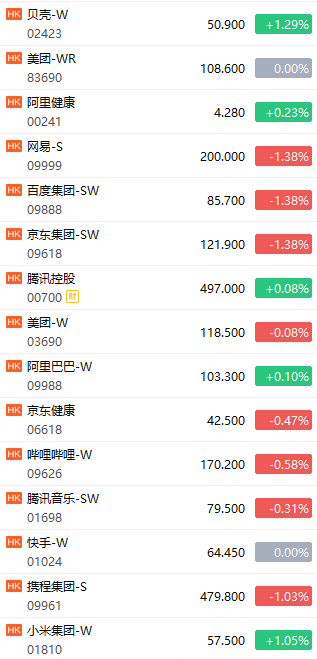 科指成分股中,蔚来涨4.89%,小米集团涨1.05%,京东集团跌1.38%,百度集团跌1.38%,网易跌1.38%。