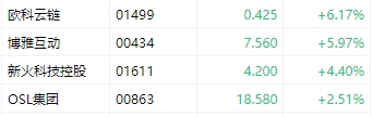 加密货币概念高开,欧科云链涨超6%,博雅互动涨超5%,新火科技控股涨超4%。
