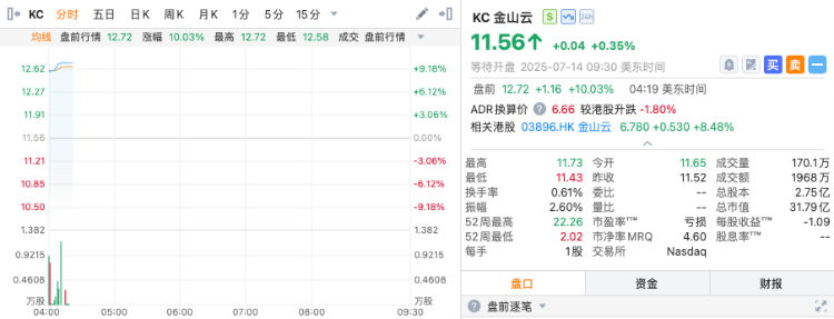 热门中概股盘前上涨,金山云涨超10%,蔚来涨超6%,贝壳、理想汽车涨超2%,阿里巴巴、哔哩哔哩、小鹏汽车涨超1%。消息面上,金山云发布金山政务AI一体机,全面接入Kimi-K2模型