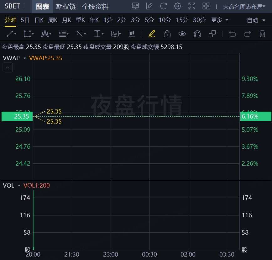 加密货币概念股SharpLink续涨逾6%,隔夜大涨逾10%,本月已累计上涨逾140%;