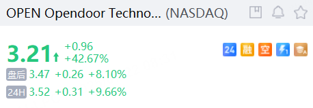 7月22日,美股夜盘时段,Opendoor强劲涨势,现涨近10%,该股隔夜收涨42%,月内累涨超500%;