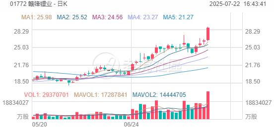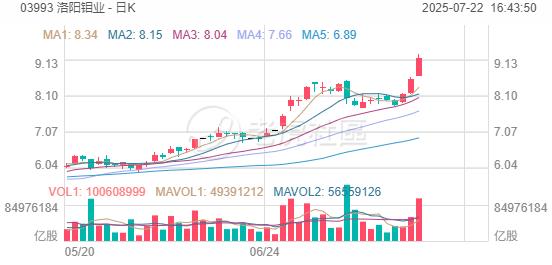 有色金属再度走高,赣锋锂业涨近9%,洛阳钼业涨超7%,天齐锂业涨近7%,紫金矿业、中国宏桥、中铝国际涨超3%。